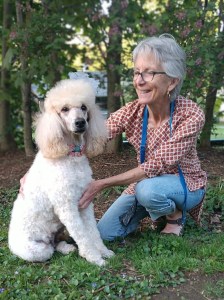 - Hope (APAW’s Don’t Stop Believin’ ATD), our super sweet and social faded apricot girl from the H litter. Hope is dam of our J’s and S’s, and had the Broadway litter for Sarsel Poodles (from which our co-owned boy Harry was born). Hope now is a doted-on companion for a long-time APAW friend and supporter.