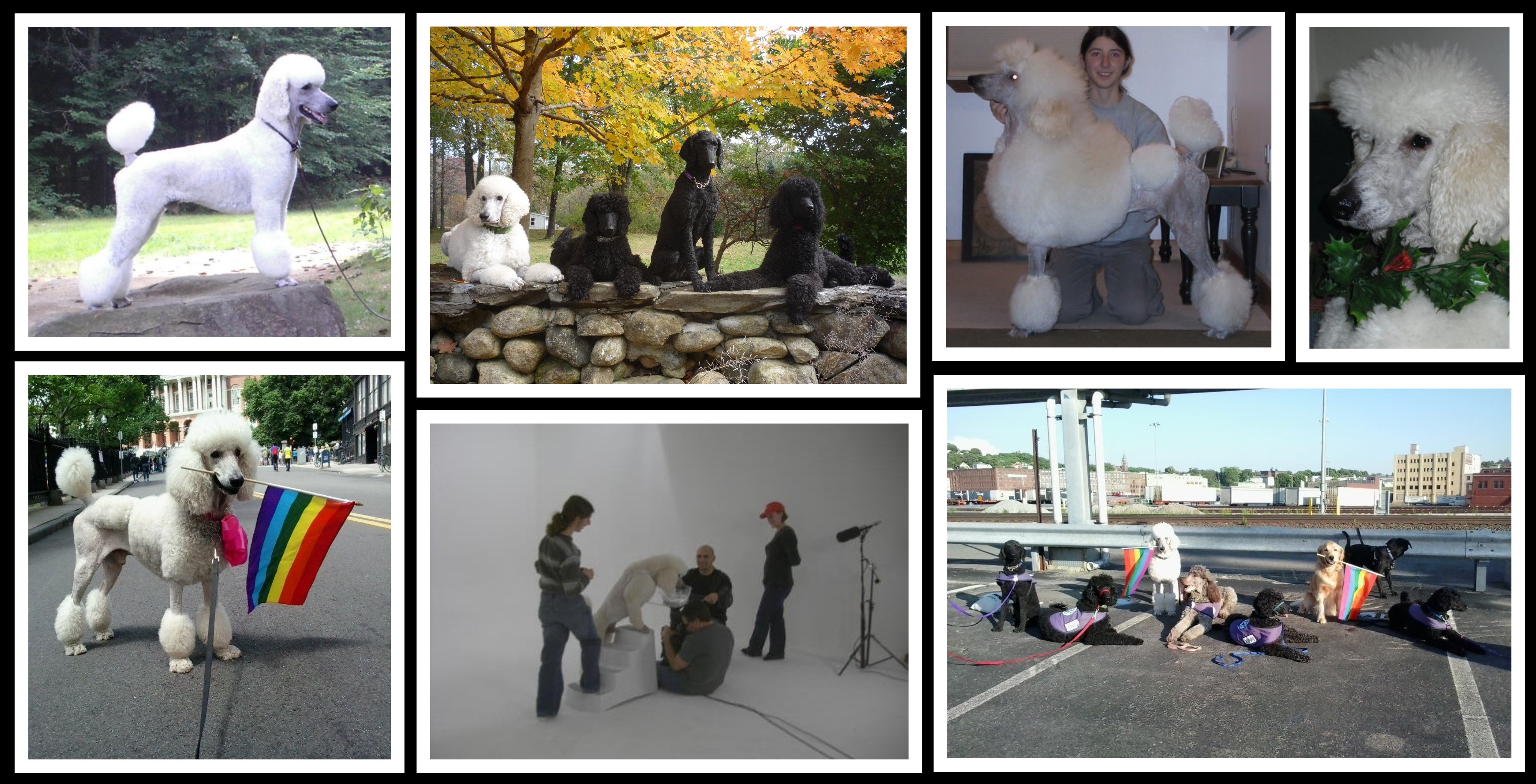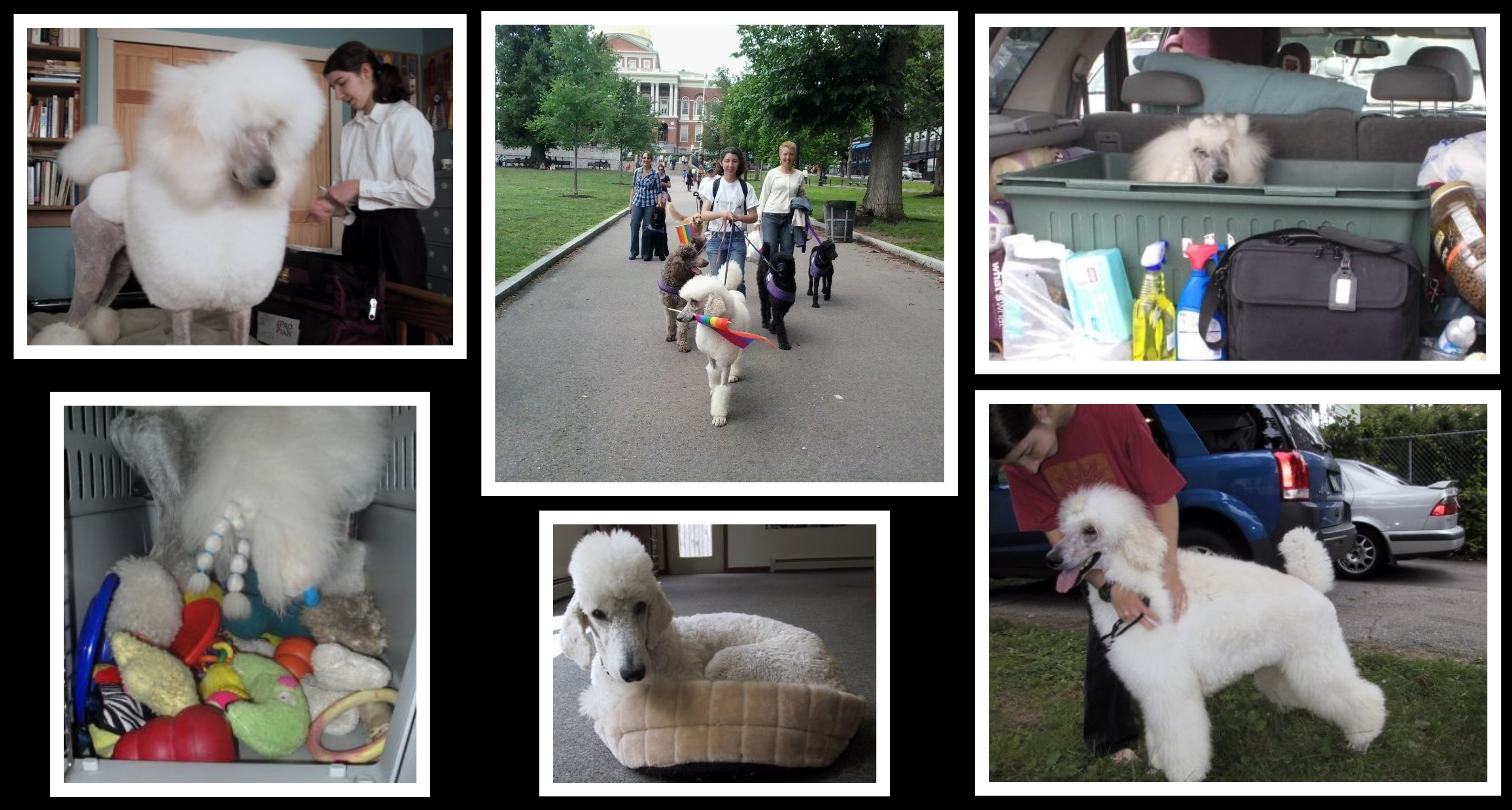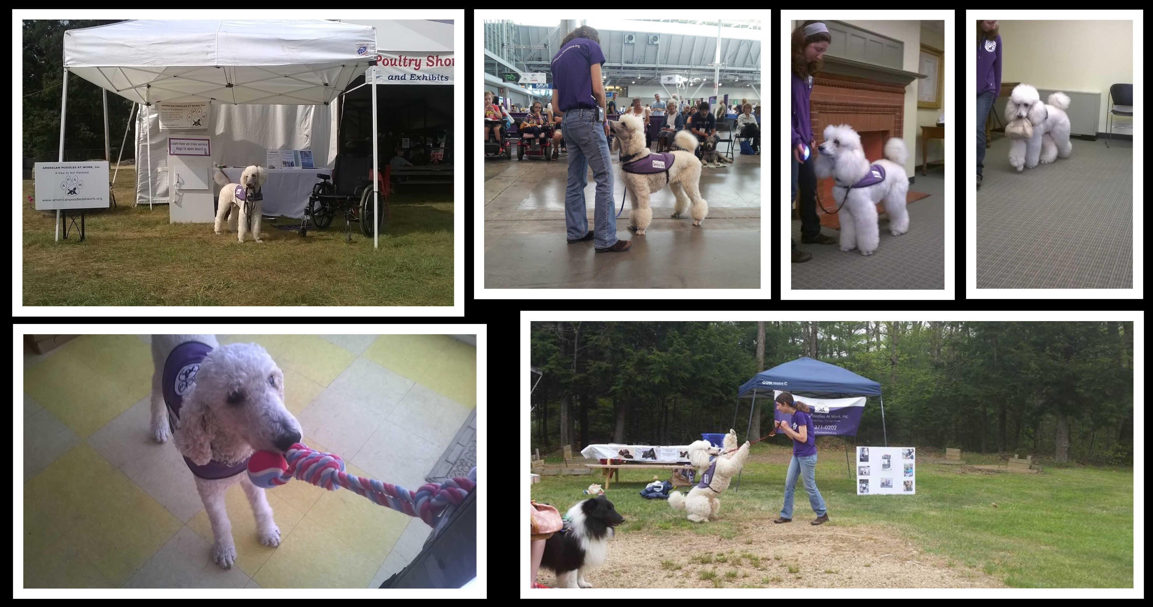 What a dog! Charlie came to teenage Jillian on a co-ownership with his breeder Kim of Moonstone Poodles – Kim had seen a post Jillian wrote about her dream dog of the future and instantly reached out to offer 7 month old Charlie. He was a truly wonderful and special do-anything kind of dog. He served many years as a therapy dog, visiting nursing homes and skilled rehabs as well as participating in multiple children’s reading programs. He was fully task trained for multiple service dog roles and was APAW’s primary demo dog for 8 years travelling all over New England to teach audiences of all sizes and ages about the important work that service dogs perform for their disabled partners. Charlie was the primary Poodle spokes-dog for Animal Planet’s hit show Dogs 101, and was very nearly on Oprah for his ability to respond to written cue cards (ultimately a counting dog was chosen for the episode instead).