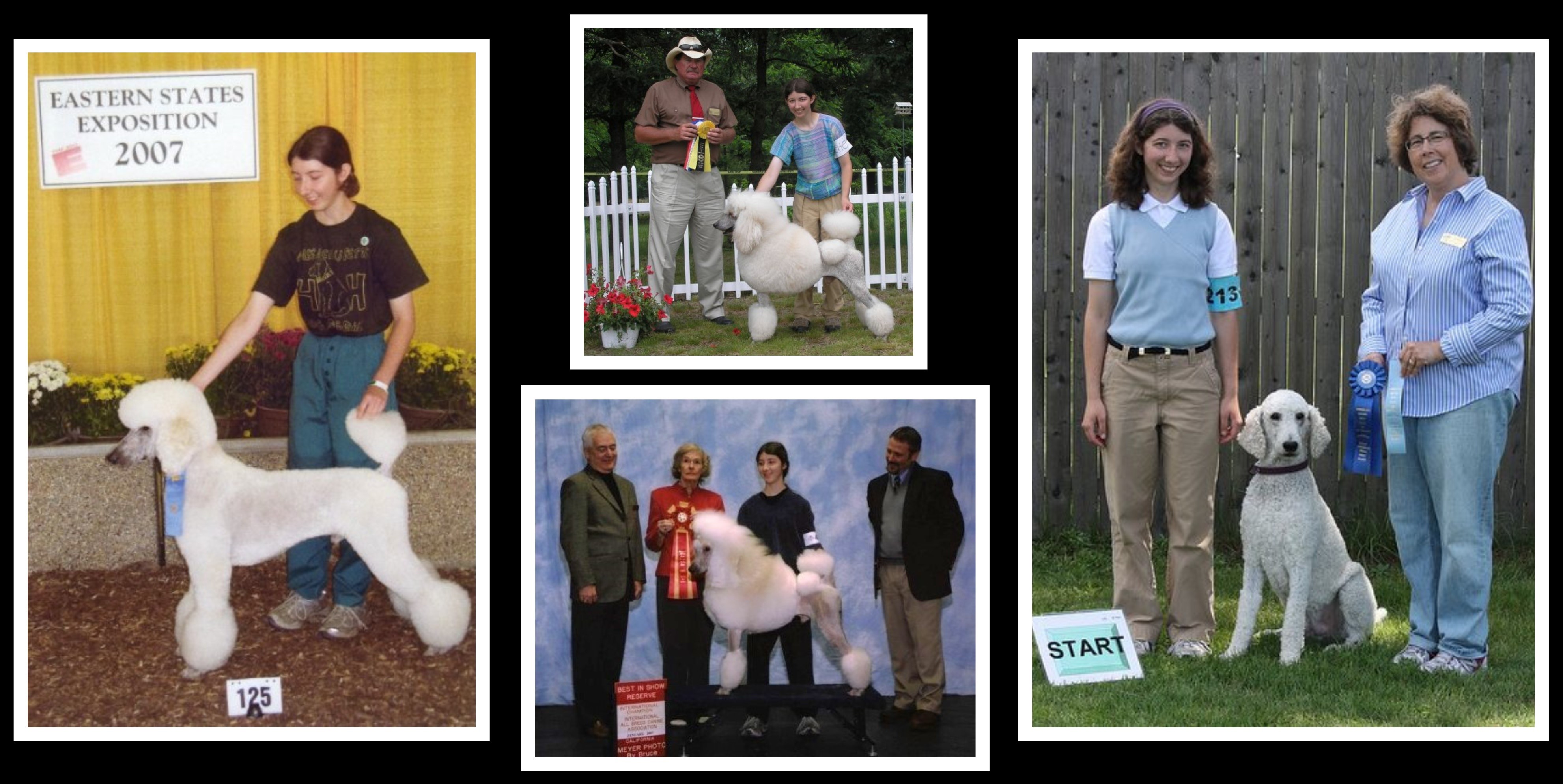 Besides his working roles, Charlie trained and competed in many sports, though not enough to finish titles – the struggle of being matched to a young and financially strained partner (Jillian)! He competed in rally through 3 organizations, competitive obedience through 2, and weight-pull, trained and participated in demos for agility and freestyle, and knew many skills that could be considered advanced tricks – some day old videos of him performing may be used to earn the many trick titles for which he would have qualified. In conformation he earned a Reserve Best in Show his only weekend entered in an international show, and he won an Award of Merit from the Grand Champion class at the United Poodle Association UKC national specialty show. We didn’t show too frequently, but Charlie was nearly undefeated in the breed ring at UKC events, and generally placed well in the competitive Gundog group ring. Charlie competed a few times in AKC with Jillian as his junior handler, but we were dismayed to be told he’d probably never finish owner-handled but would likely finish quickly if sent out with a professional handler – Jillian has always felt strongly that dog sports are meant for the team of a dog and their partner, not to pay someone else to do the handling just to get the titles.