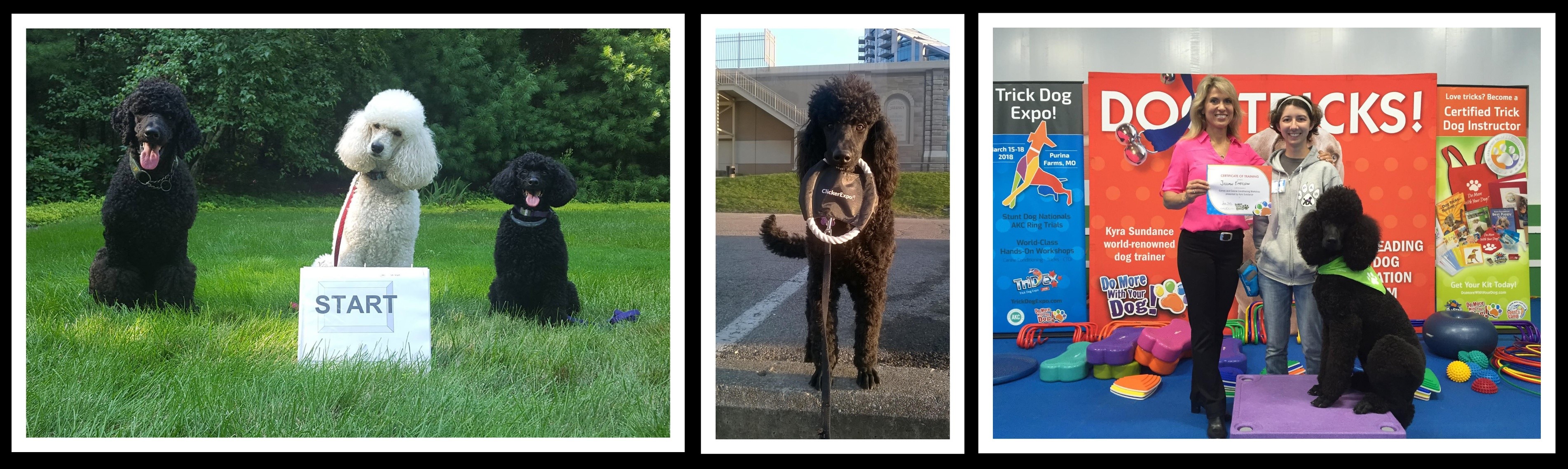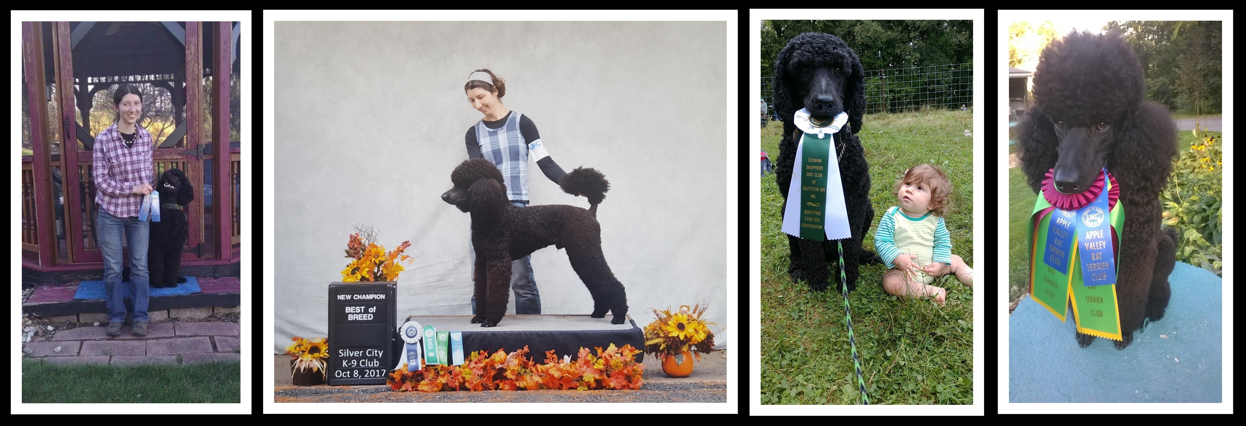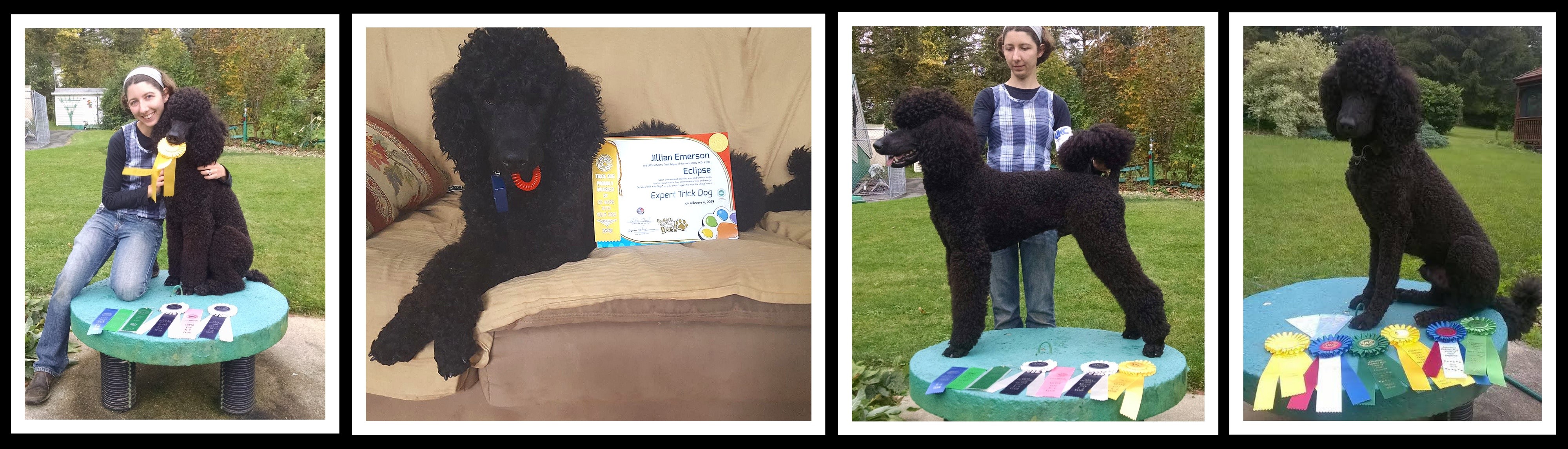 Eclipse has titles in conformation, rally, tricks, parkour and temperament, and has trained a bit for agility though life with kids got in the way of competing. He is also full trained as a service dog and gives demos from time to time, though presentations have dwindled since kids and pandemic.
