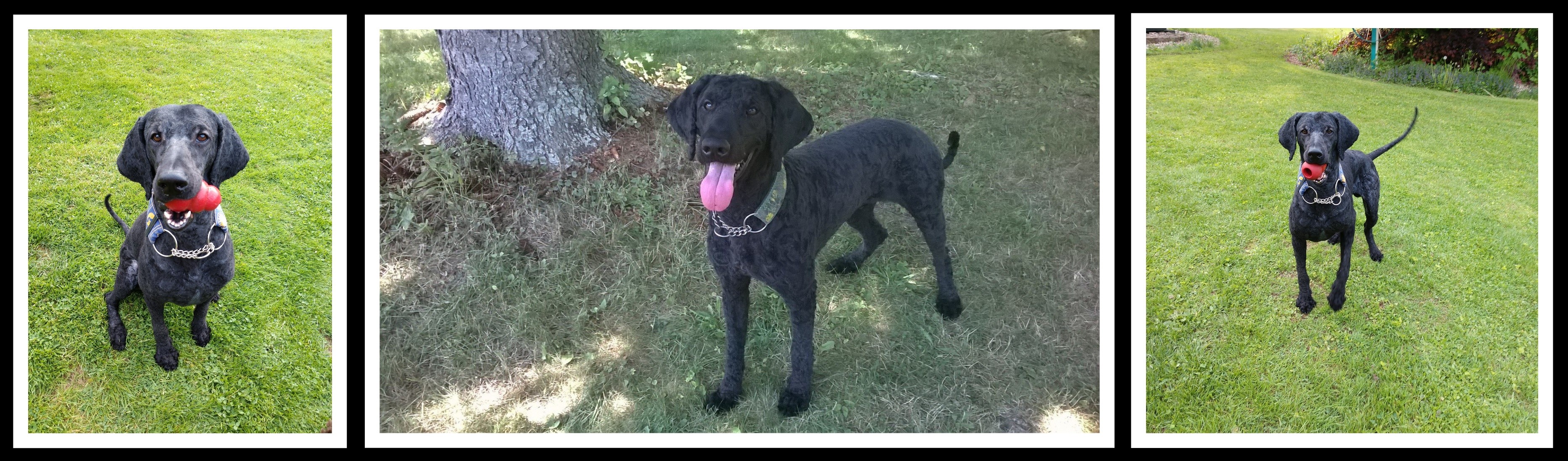 Eclipse is absolutely amazing – every person should be lucky enough to have a dog like Eclipse at least once in their life. He is a complete Mama’s boy, in any environment his focus remains on his person even while he’s relaxing or playing fetch with others… if his person moves or says anything he’s instantly at attention. He has a very strong work ethic and will work hard to accomplish his task or find a solution to the problem. He is very smart and loves to learn anything, especially if there is any retrieving or object-in-mouth involved. The only thing that could be improved regarding his temperament is that he gets a bit anxious if he thinks he is trapped with a stranger – he’d rather hold his own stay or wait on a grooming table than to have his leash held by a stranger while his person does a run-through at a trial. He’s not interested in strangers unless they know how to play fetch, in which case he’s instant best friends; food also buys his heart quickly.