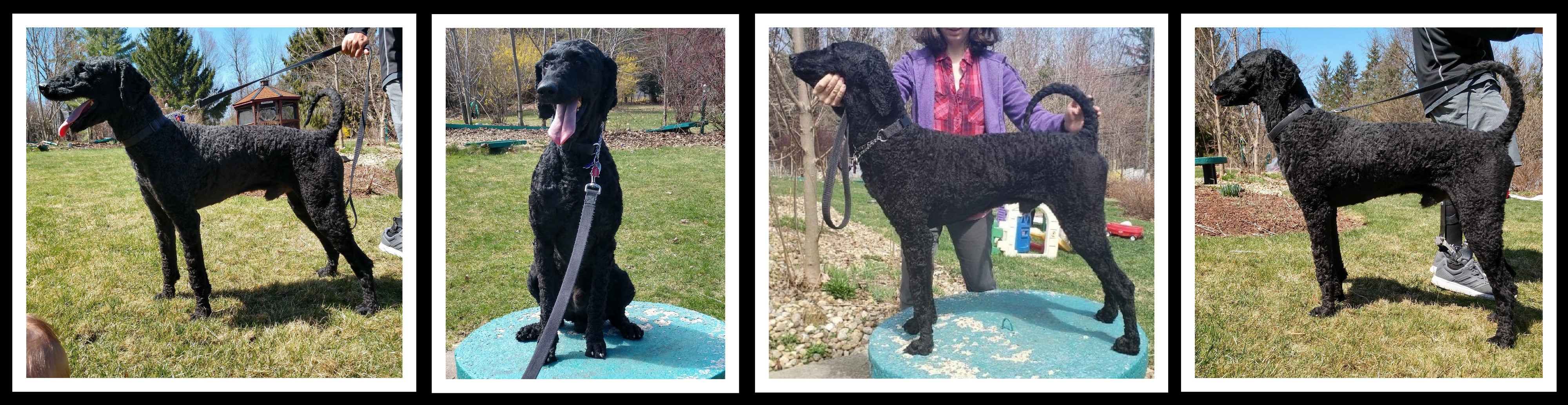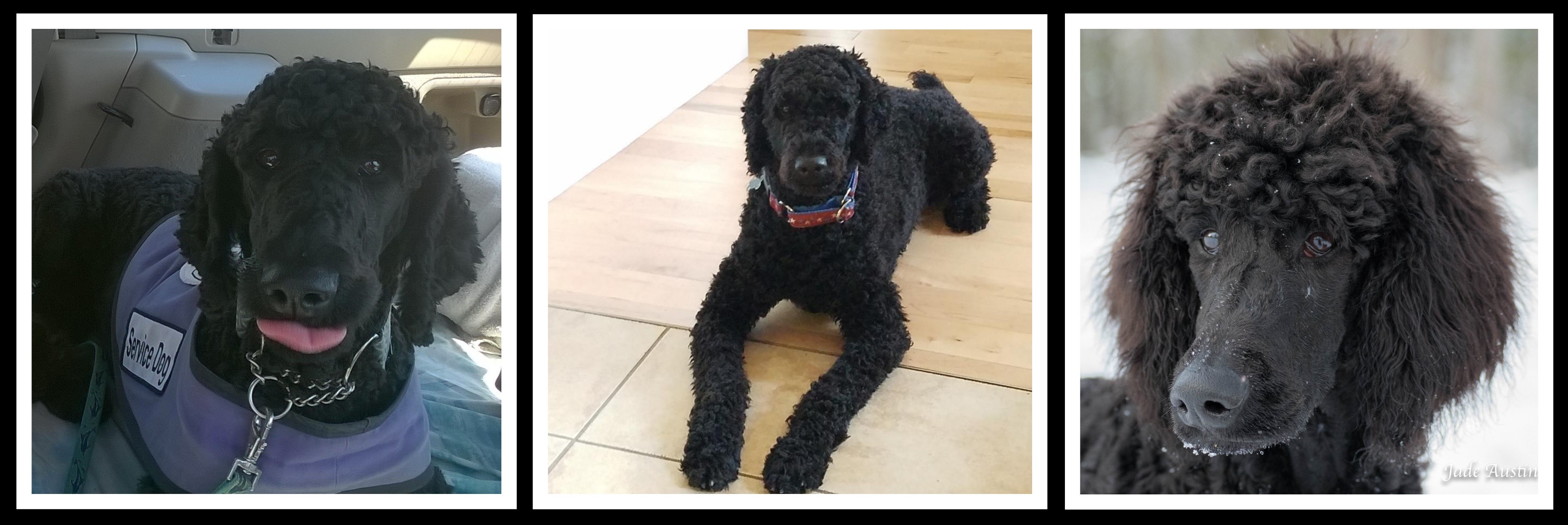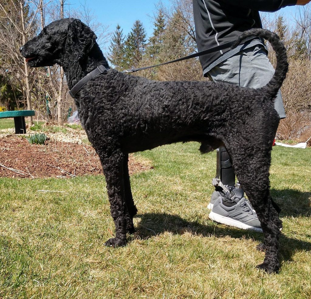 Onyx is a big, strong, confident, laid-back dog and a bit of a goof-ball. He did well in his service dog training and worked for a number of years before retiring to more of a companion role for his partner. He was kept intact for breeding potential, and we did breed him once, unfortunately getting early cataracts in two of the 4 puppies (only 1 has actually lost any vision). There is no genetic test available yet for this disease so the general consensus is to treat it as a simple recessive which is carried by both parents – this means that breeding him again is risky until a test is available, at which point he could safely be bred to any clear female and never produce another affected pup. The plan is to keep him and two of his highly diverse sons intact unless neutering is needed, in the hopes of safely continuing the line once a test exists.
